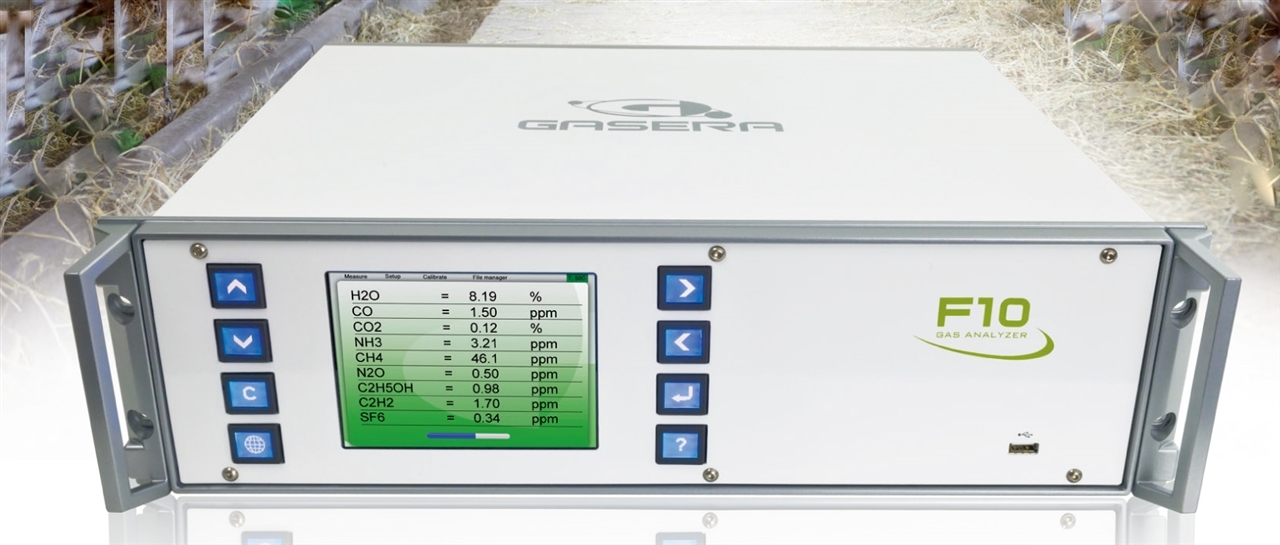 The F10 is based on photoacoustic infrared technology. It has pulsed IR source and 10 distinct spectral bands in the mid-IR region defined by narrow band-pass optical filters. High sensitivity is obtained by utilizing the patented cantilever based optical microphone technology.