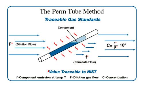 Permeation tubes use a permeable membrane to dispense a small flow of chemical vapor